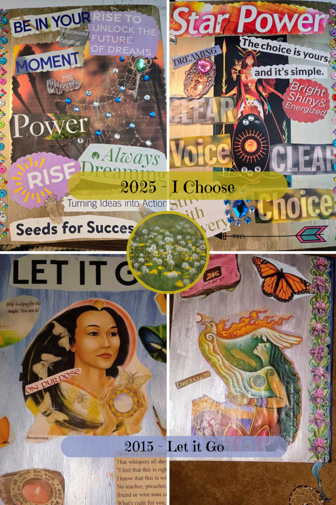 Today, during a powerful invitation to remember, own, and reclaim my power, I created a new journal with this year’s power intention “I Choose” woven throughout. In embracing this gift of an invitation I found some of those Dream seeds I planted so long ago floating now in light & possibility. It was like finding a whole field of wishing dandelions, one of my most joyful things. As I remembered & said hello again to these precious Dream seeds I felt the joy of dream weaving possibility shimmer around me. I felt the bright, shiny, powerful “I am a Warrior ” energy awaken with a resounding YES. I felt the power of MY story and the power of MY dreams meet with a surge of connection. I felt my inner knowing tell me “Even if you are scared, you can do anything you dream of. Unlock your warrior power & rise.”